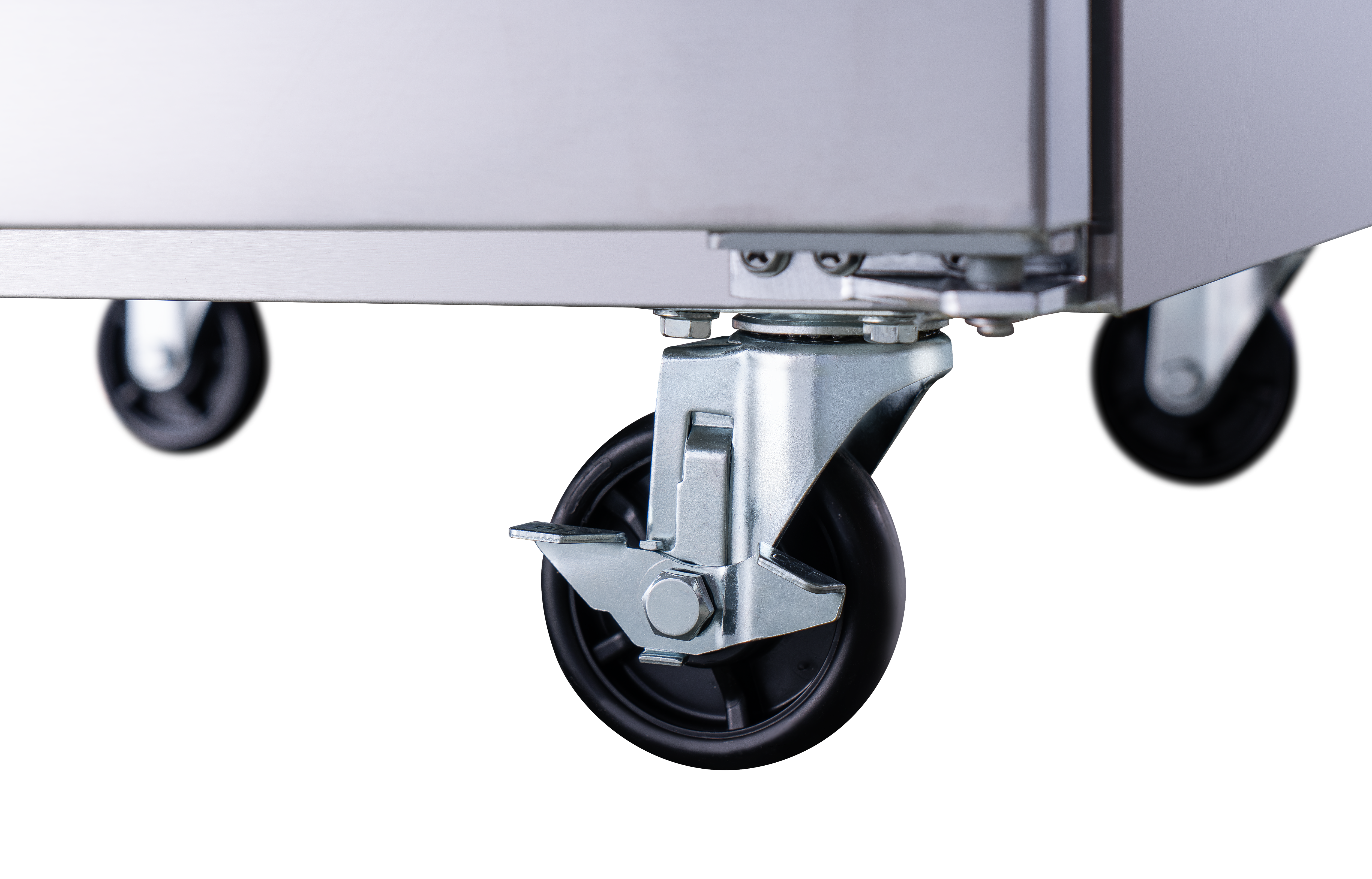 With its digital temperature controller, the unit provides precise regulation for optimal food safety. A ventilated cooling system with automatic defrost ensures consistent performance with minimal maintenance, while eco-friendly R290 refrigerant provides sustainability. Equipped with self-closing doors with a 90-degree stay-open function, and adjustable heavy-duty PVC-coated shelves. Designed with locking casters, it can be easily moved effortlessly, offering both durability, and convenience in one compact unit.