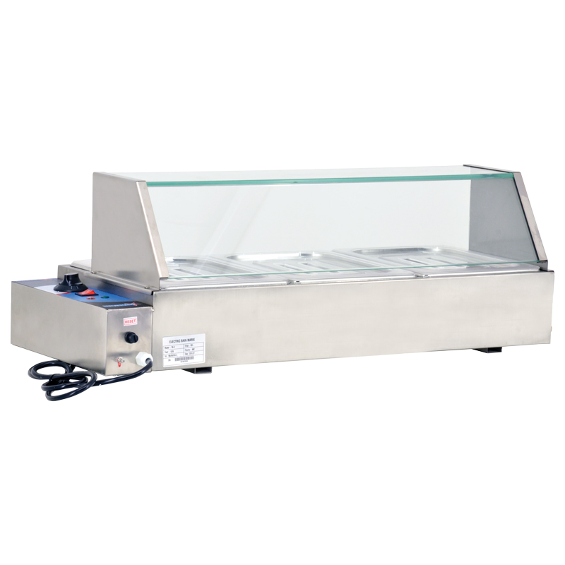 Our bain marie BSB Series are constructed with high quality stainless steel. It provides high-efficiency performance and equipped with a thermostat. Comes with glass sneeze guard, 1/2" size pans and clear lids. These products are ideal for restaurants, hotels, banquet halls, and cafeterias.36" Bain Marie with 3 Half-Sized Pans