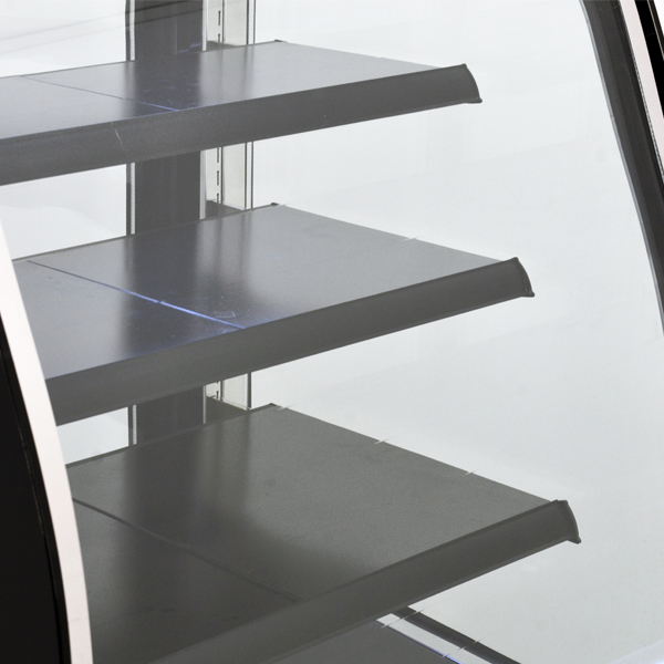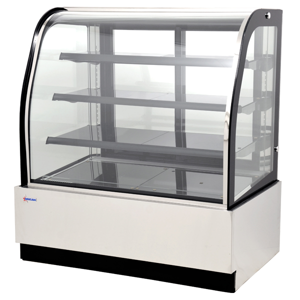 Omcan's Curved Glass Floor Refrigerated Display Case provides an economical solution for displaying your products. Features an exterior tempered glass finish and interior LED lighting, this refrigerated showcase also has an automatic defrost system and fan cooling system. Easy to use and clean. Ideal for deli shops, cafes, and sandwich shops.