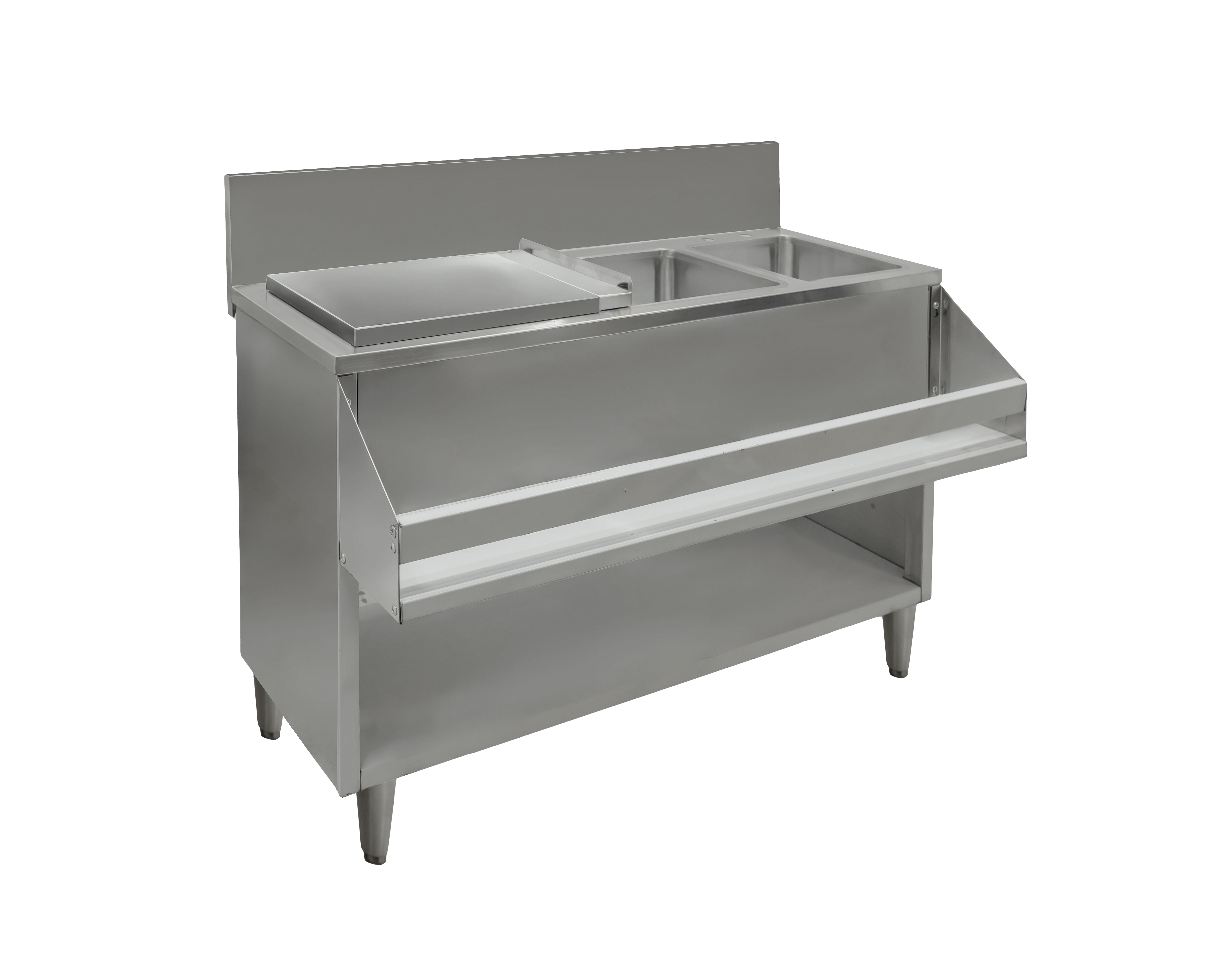 48″ Cocktail Mix Unit with 7″ Back Splash, 32″ x 12″ x 10″ Ice Bin with Sliding Cover, and 10″ x 12″ x 10″ Sinks