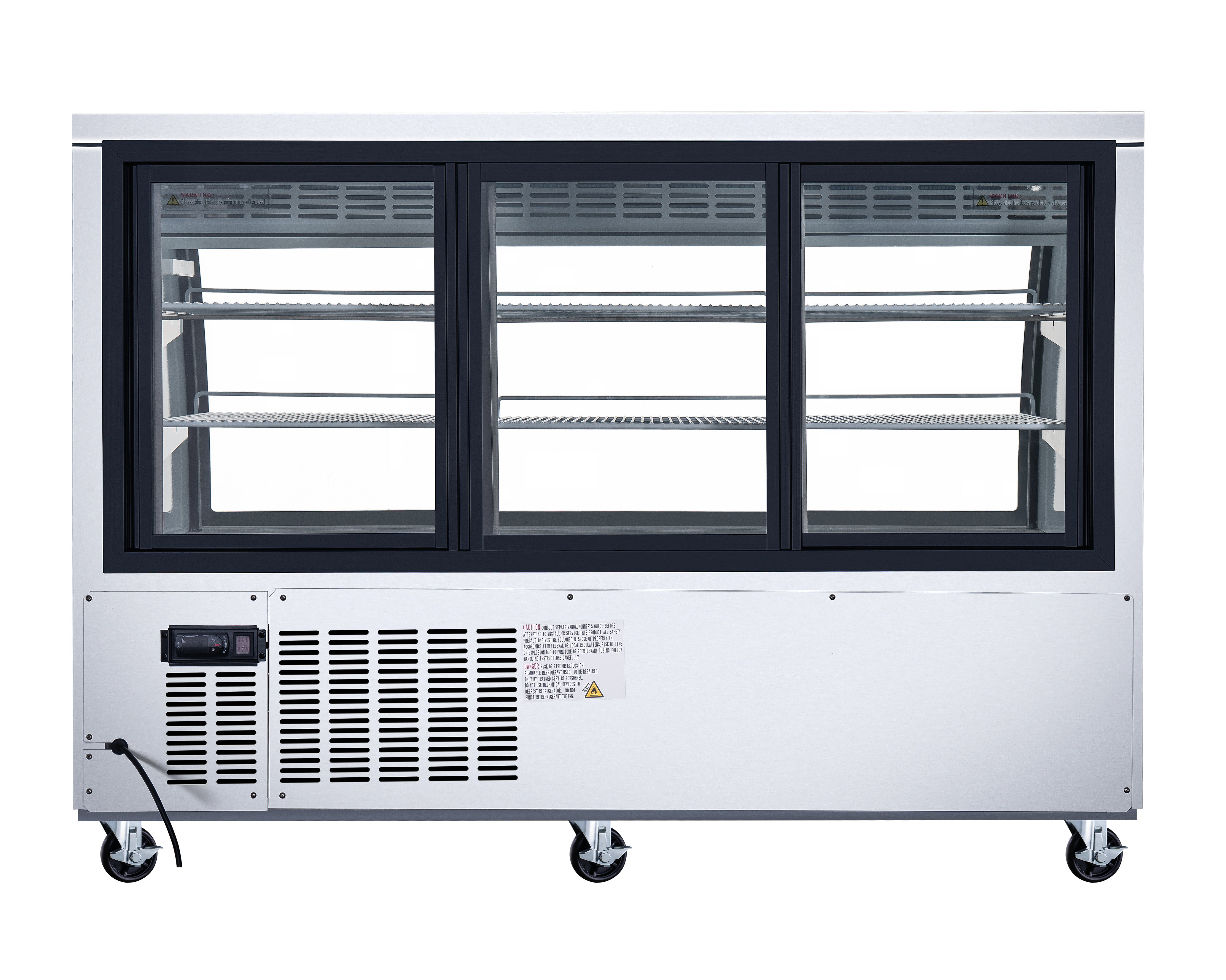Its clear curved glass display ensures full visibility of your refrigerated products, helping to capture customer attention. This unit features a spacious interior lined with aluminum and a durable stainless steel floor, making it ideal for busy retail environments. The rear sliding glass doors offer easy access, while the rounded corner design inside the cabinet simplifies cleaning. The removable installation board allows for hassle-free maintenance and service. Equipped with adjustable, heavy-duty PVC-coated shelves and bright LED lighting, your products are displayed clearly and attractively. The gravity coil refrigeration system helps maintain freshness and prevents food from drying out, making this showcase both functional and efficient.